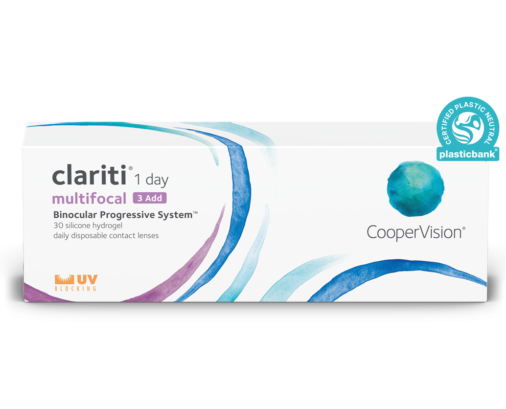 - A clariti® 1 day multifocal műanyagsemleges termék. A CooperVision minden egyes eladott és forgalmazott clariti® 1 day multifocal kontaktlencsedoboz után megfelelő mennyiségű műanyaghulladékot ellensúlyoz.‡¹